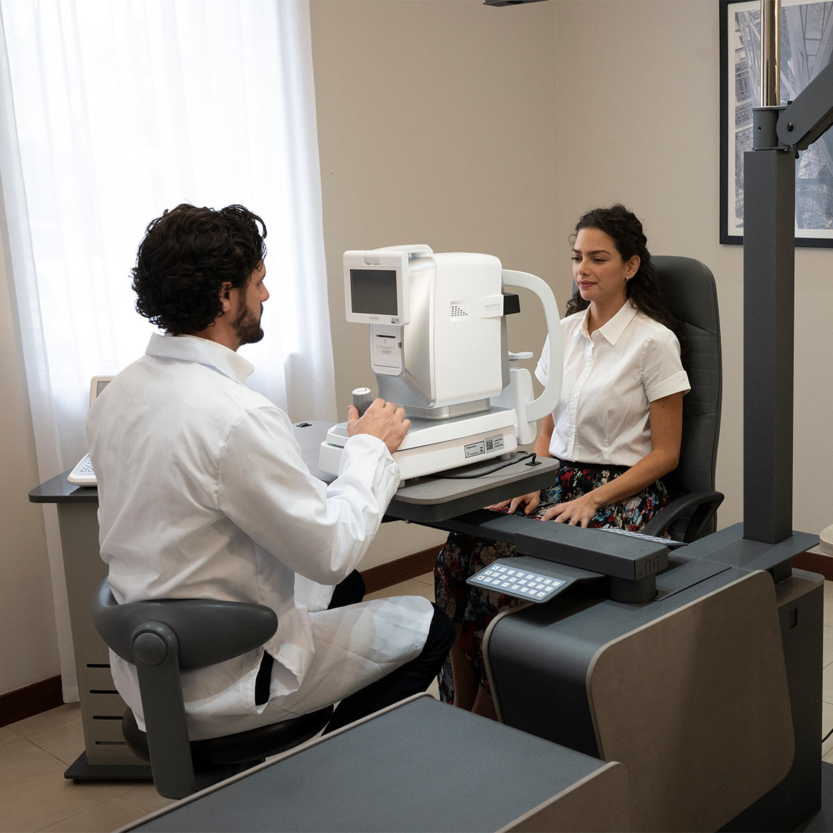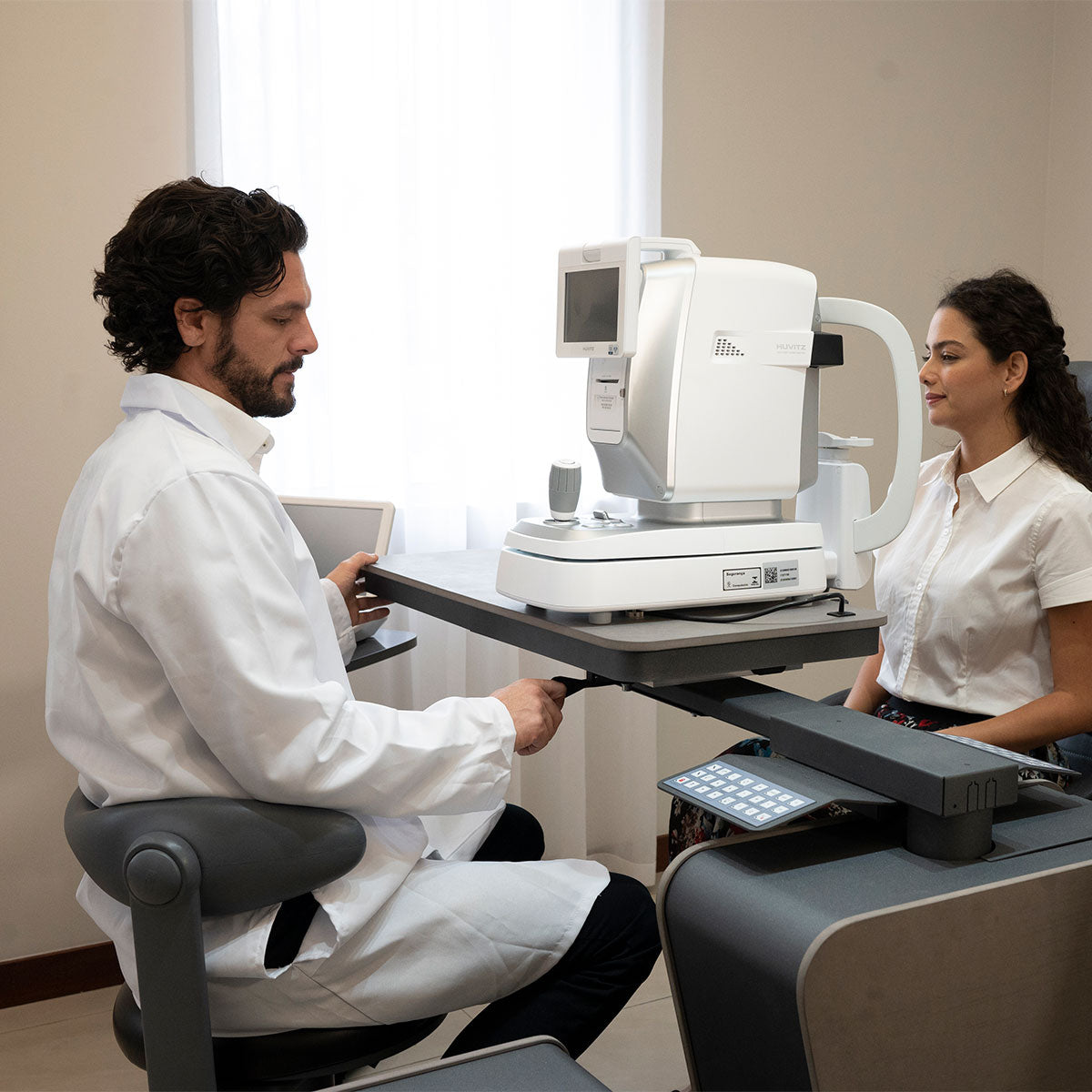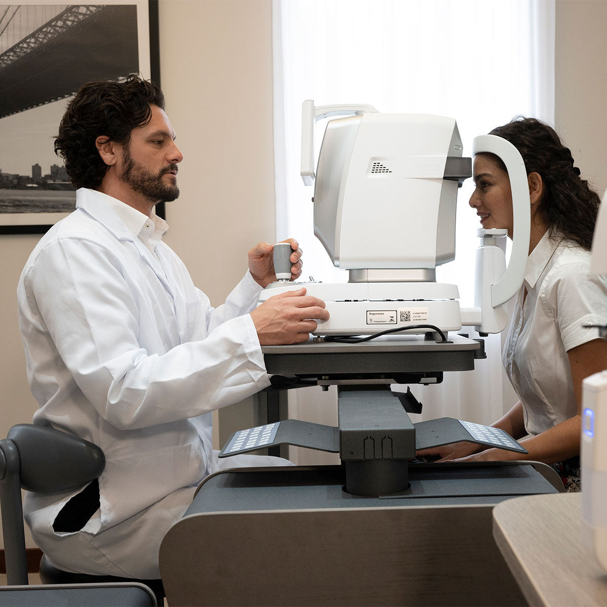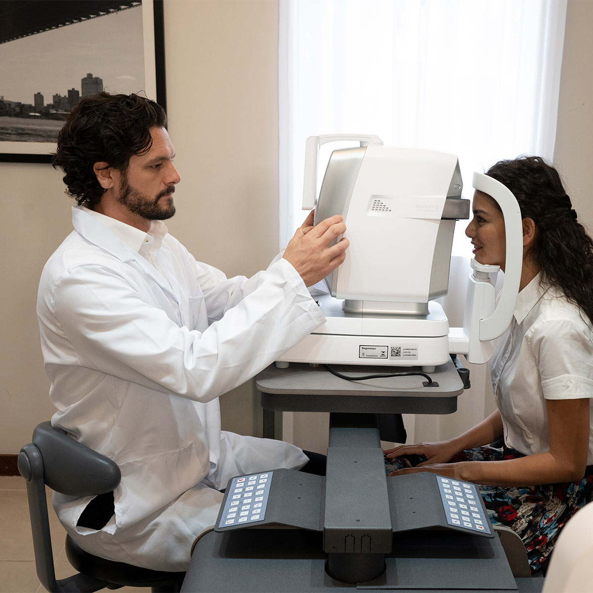 A câmera CCD em cores e a fonte de luz LED branca do autorrefrator/ceratômetro permitem visualizar os olhos e o ajuste de lentes de contato — algo antes possível apenas com lâmpadas de fenda.