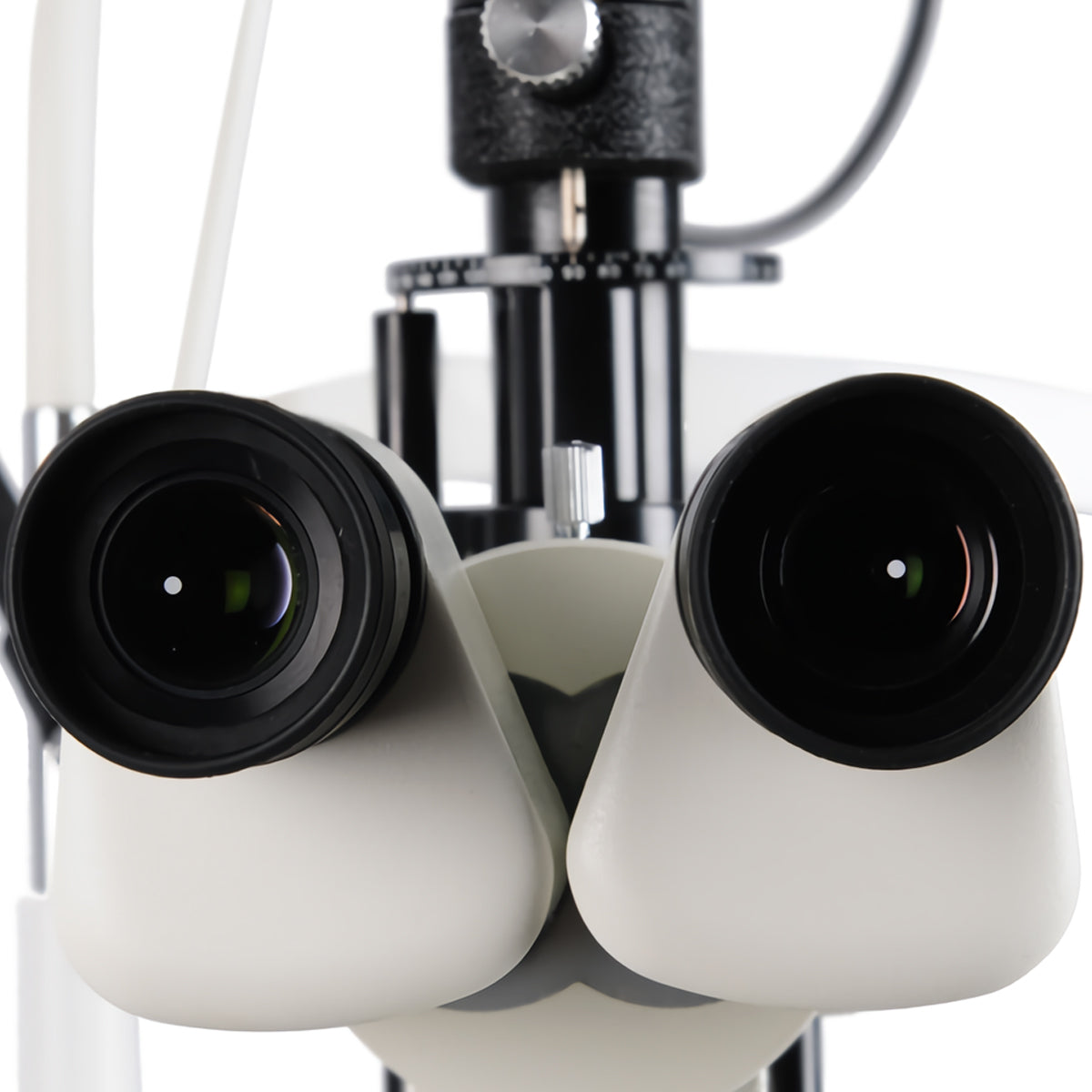 Sistema Óptico Versátil Este microscópio Galileu com cabeça estereoscópica simplifica e traz clareza até mesmo aos exames mais desafiadores. As ópticas da Lâmpada de Fenda SL-1400 são ideais para sistemas de imagem tecnologicamente avançados. Um divisor de feixe opcional permitirá ilustrar patologias utilizando sistemas de imagem digital e vídeo quando estes estiverem em posição. O divisor de feixe de porta dupla também permite a conexão de um assistoscópio. |