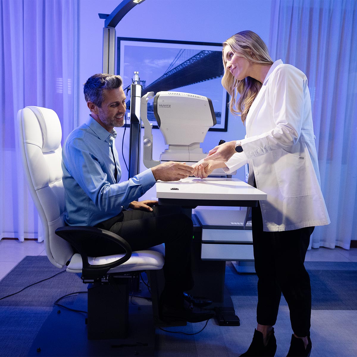 O Ponto de Mira orienta rapidamente para encontrar com facilidade o ápice visual do paciente a partir de qualquer posição, permitindo alinhamento ágil. Em seguida, os dados REF de potência refrativa são obtidos automaticamente, com confiabilidade.