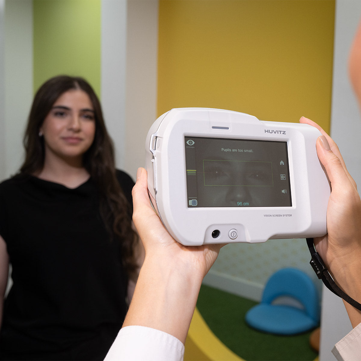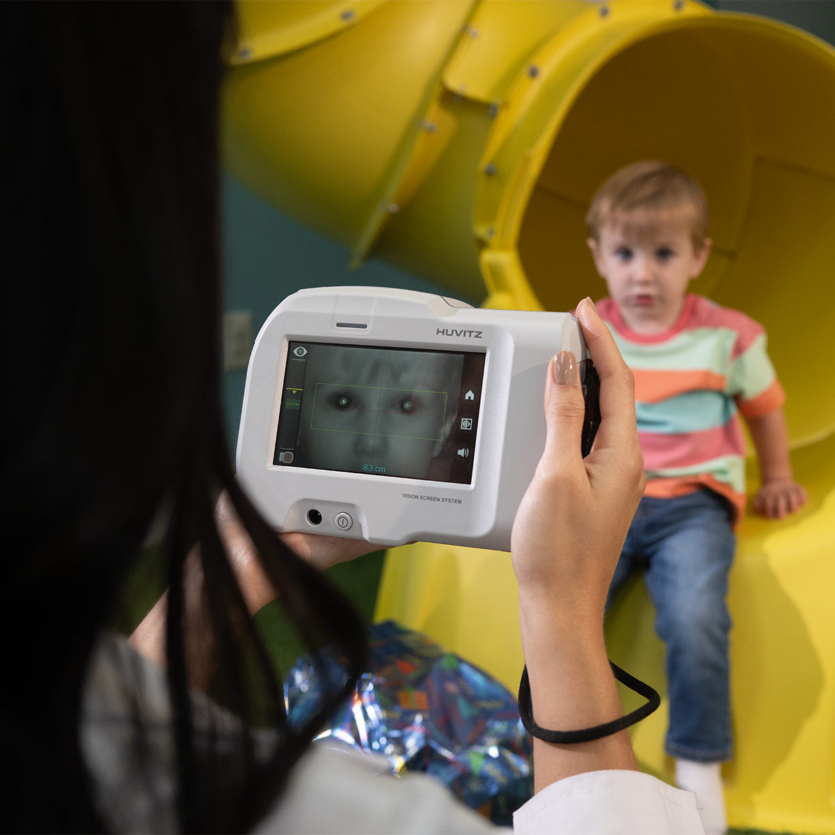 O HVS-1 foi projetado para avaliar rápida e precisamente indivíduos de todas as idades, desde bebês a partir de seis meses até adultos, incluindo aqueles com mobilidade reduzida que podem ter dificuldade com autorefratores de mesa tradicionais. Este dispositivo avançado detecta erros de refração em menos de um segundo a partir de uma distância de 1 metro, tornando-se uma ferramenta essencial para identificar riscos de ambliopia, como miopia, hipermetropia, astigmatismo e estrabismo.